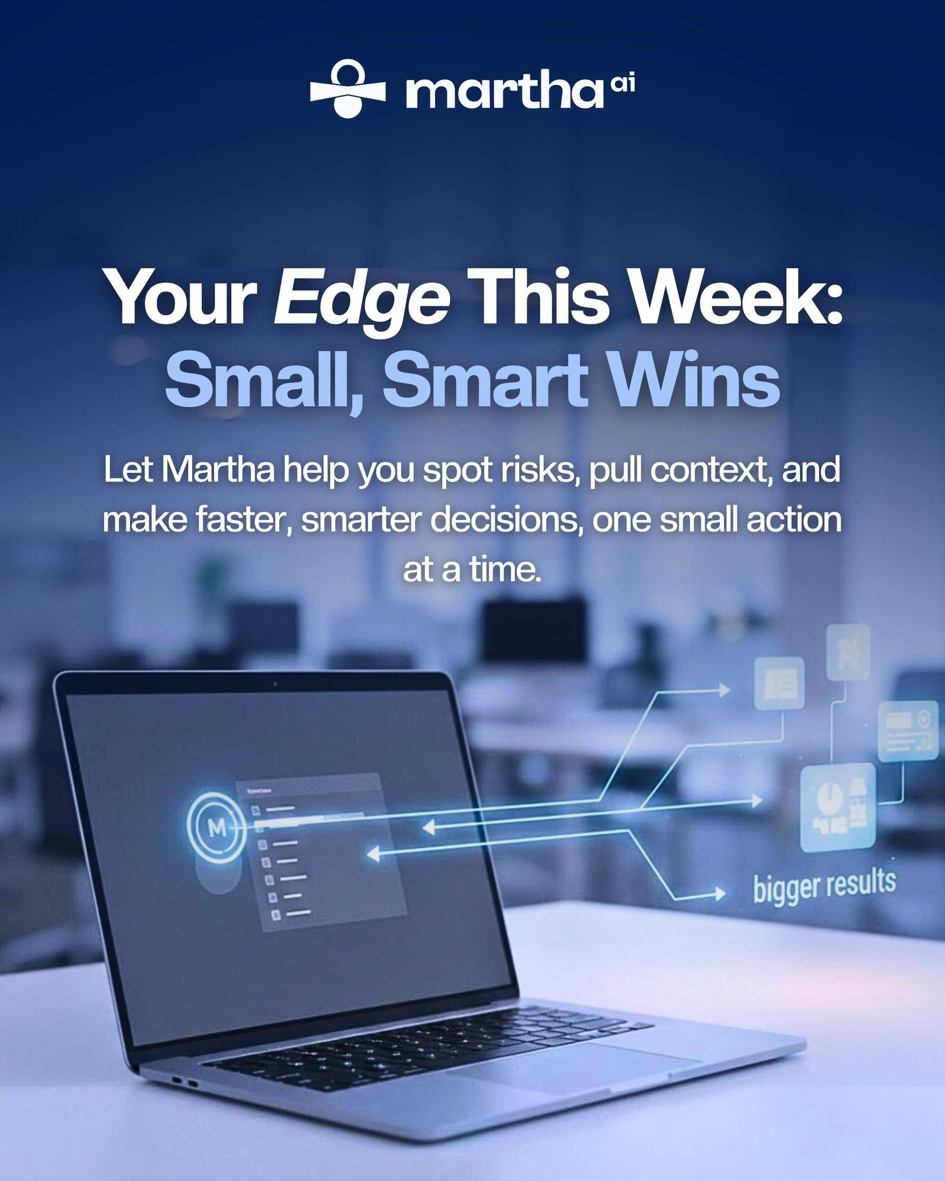 This week, try to make Martha part of your workflow in a small but meaningful way. Let her pull context, suggest next steps, and flag risks. Let her help you think faster and act smarter. In doing so, you will see that small habits are not small at all. They are compounding advantages that grow every week.